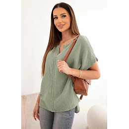 • Dámská bavlněná oversize halenka s výstřihem do V a krajkou khaki