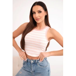 Dámská bavlněná proužkovaná top bez rukávů pudrově růžová