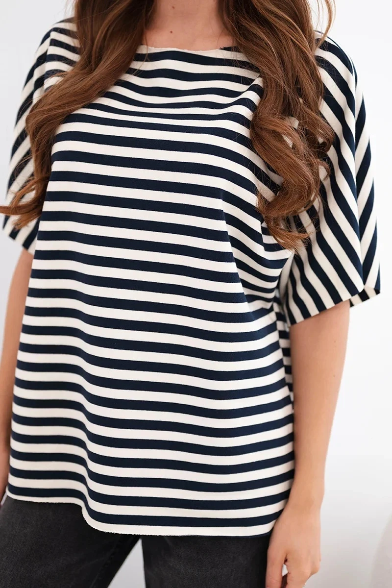 Dámská bavlněná pruhovaná halenka s krátkým rukávem černá