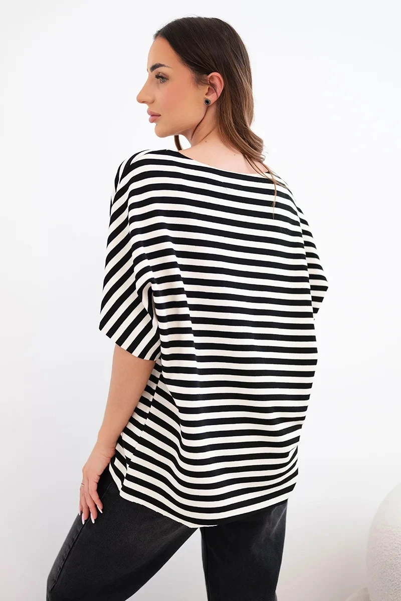 Dámská bavlněná pruhovaná halenka s krátkým rukávem námořnická