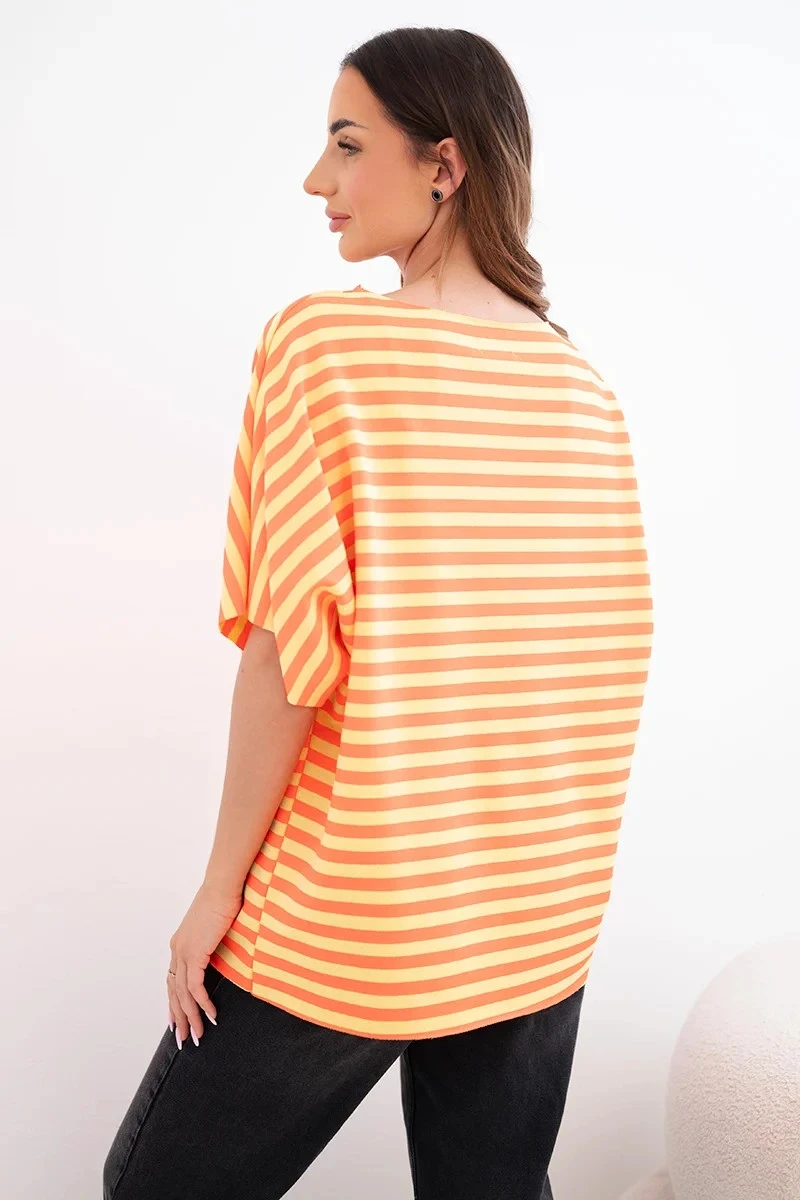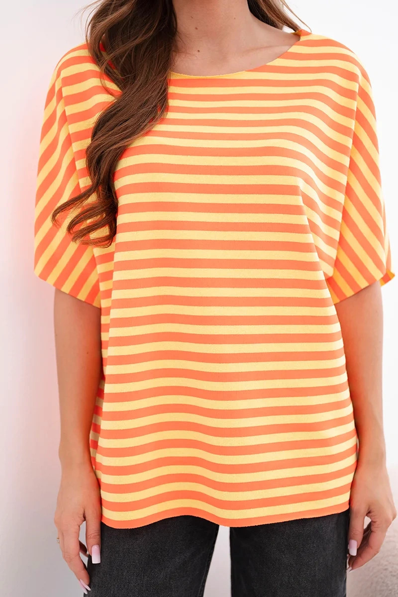 Dámská bavlněná pruhovaná halenka s krátkým rukávem oranžová