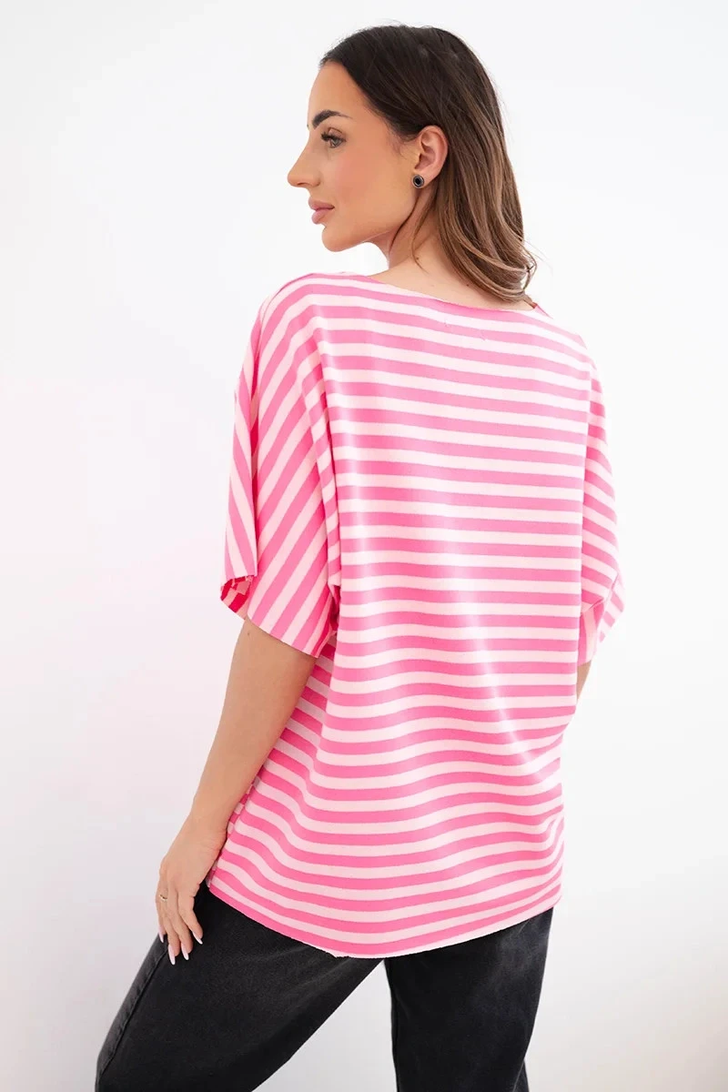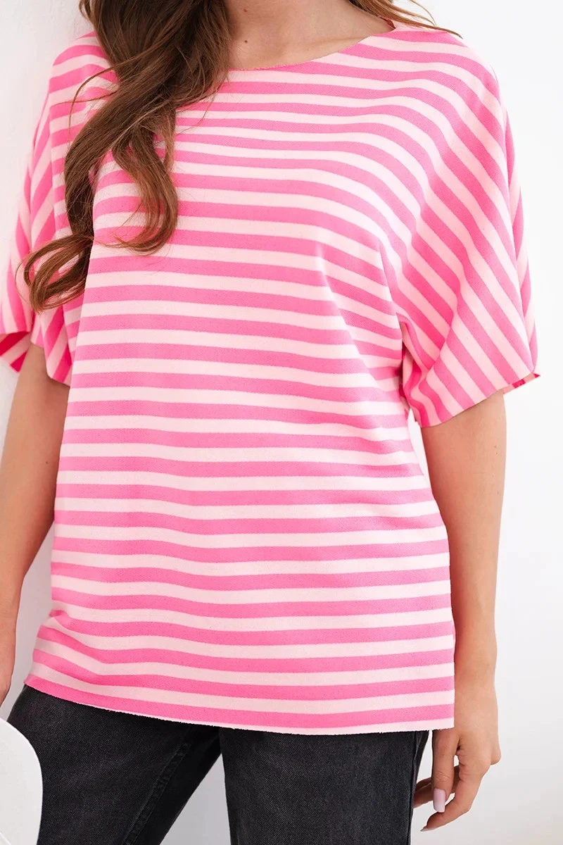 Dámská bavlněná pruhovaná halenka s krátkým rukávem růžová