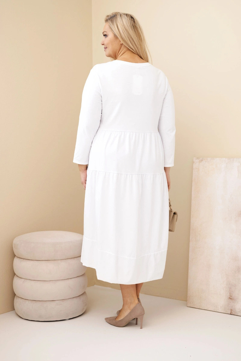Dámská bavlněná šaty Plus Size s volány a ohrnutým rukávem bílá