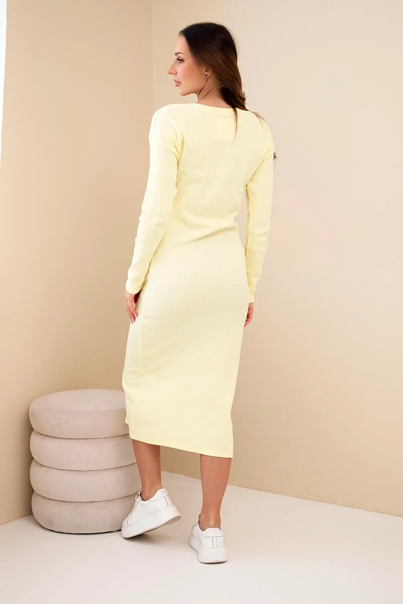 Dámská bavlněná šaty s dlouhým rukávem a výstřihem na knoflíky žlutá