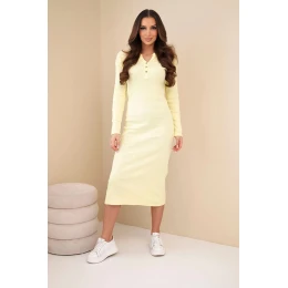Dámská bavlněná šaty s dlouhým rukávem a výstřihem na knoflíky žlutá