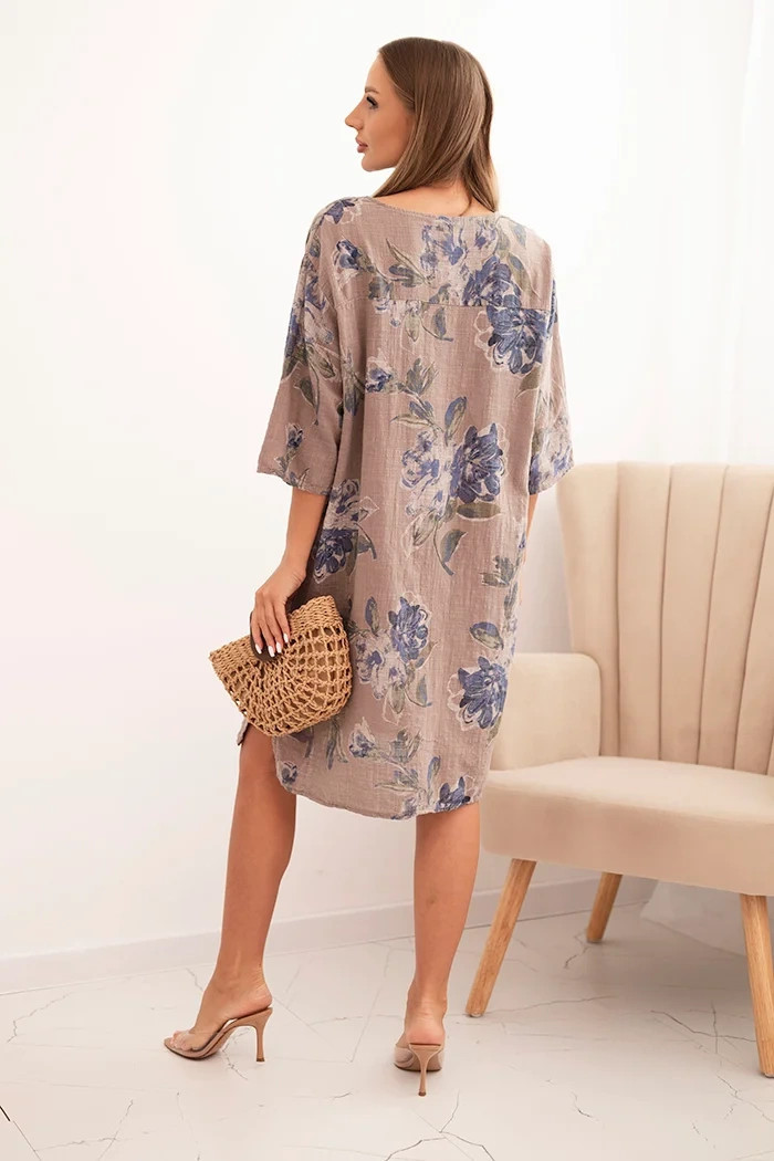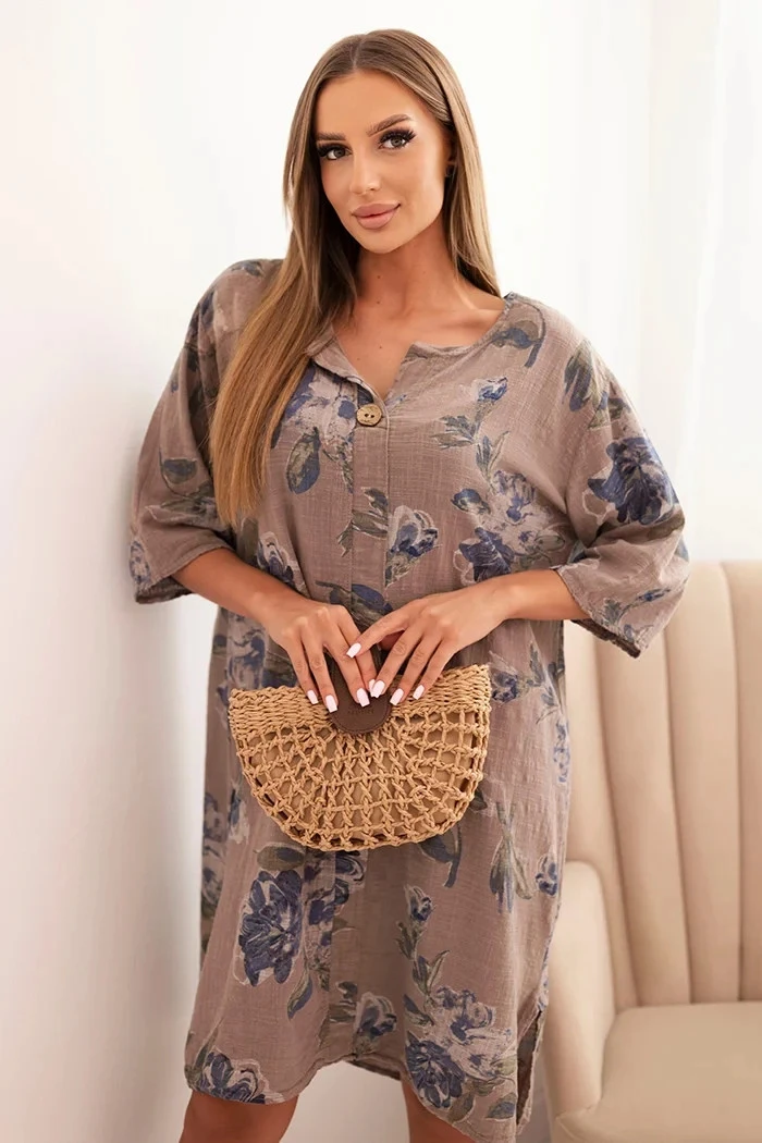 Dámská bavlněná šaty s květinovým vzorem a 3/4 rukávem fango