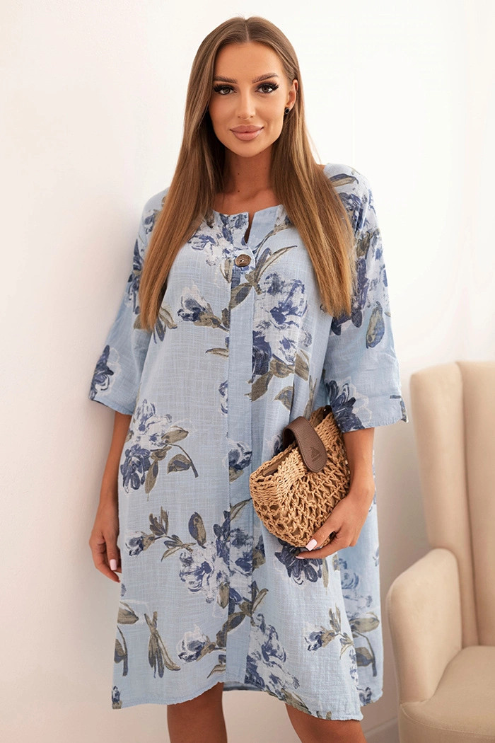 Dámská bavlněná šaty s květinovým vzorem a 3/4 rukávem modrá