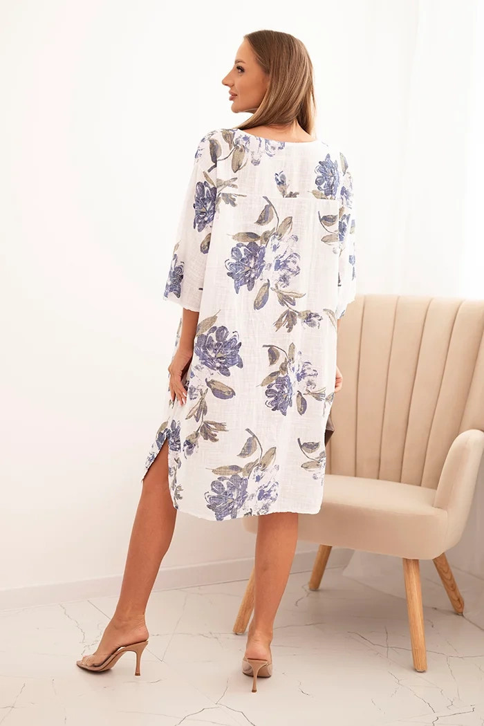 Dámská bavlněná šaty s květinovým vzorem a rukávem 3/4 bílá