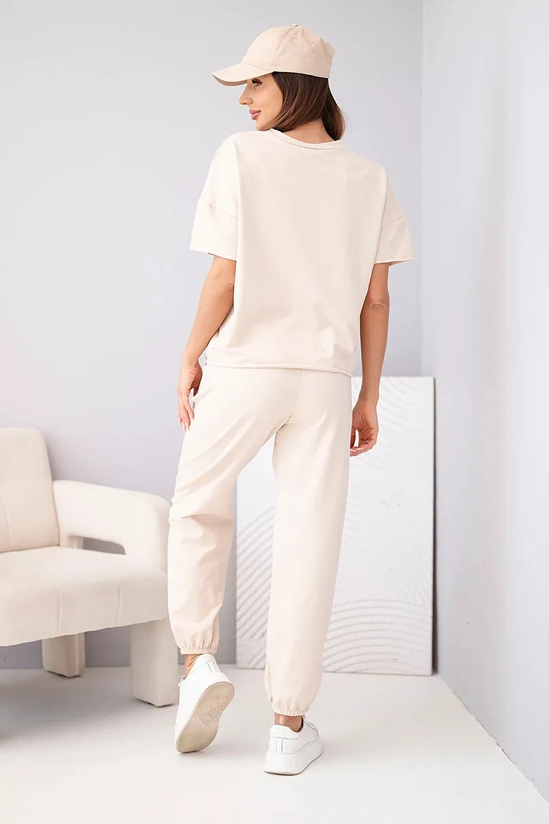 Dámská bavlněná souprava halenka s krátkým rukávem a teplákové kalhoty béžová