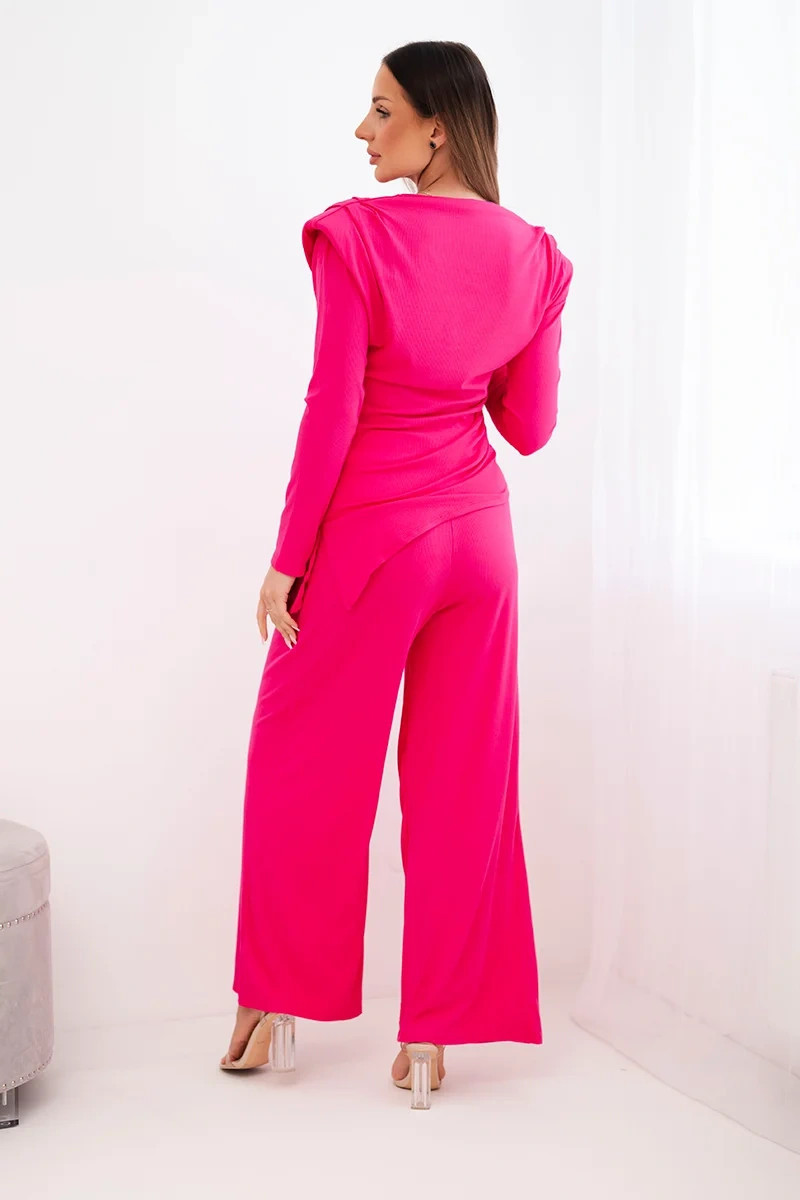 Dámská bavlněná souprava s blůzou a širokými kalhotami fuchsie