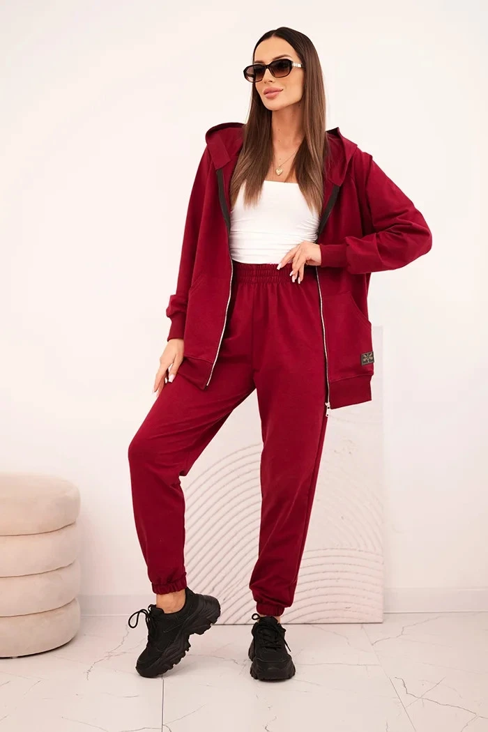Dámská bavlněná souprava s kapucí a zipem bordová