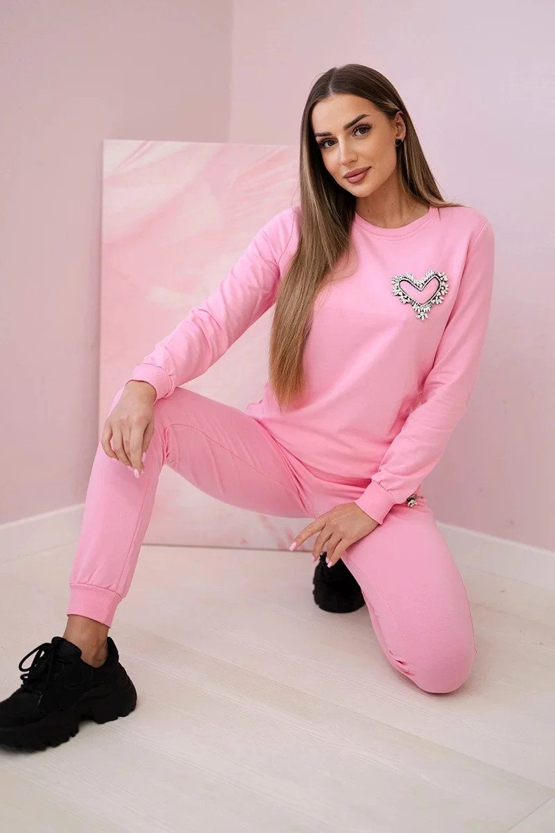 Dámská bavlněná souprava s ozdobným model 21125168 bonbónově růžová - K-Fashion