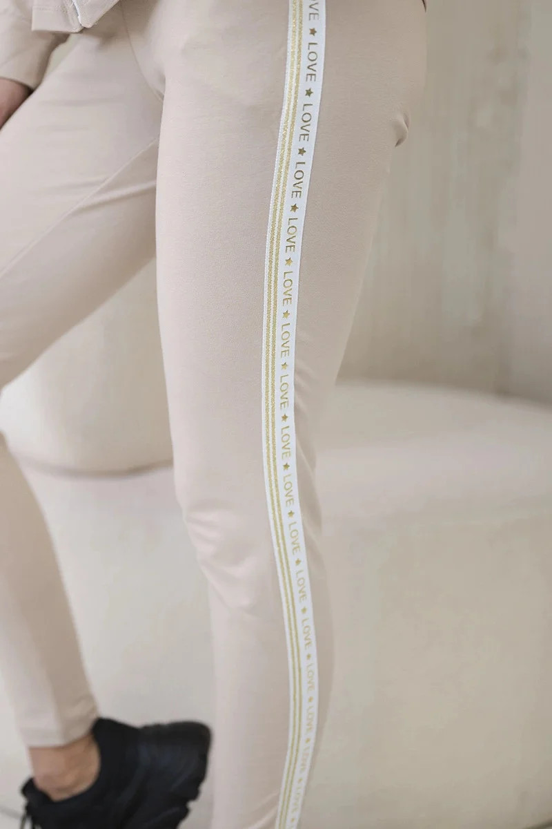 Dámská bavlněná souprava s proužky a stahovacími lemy béžový