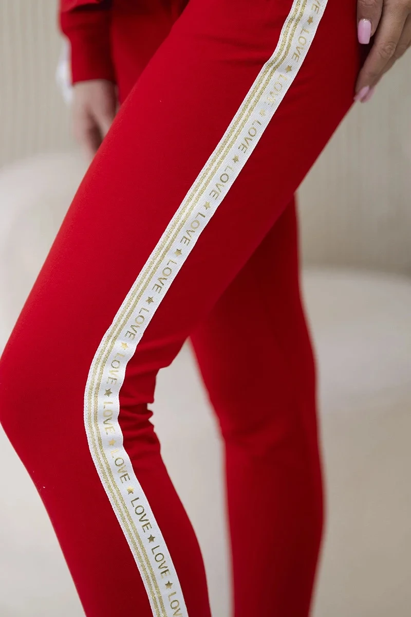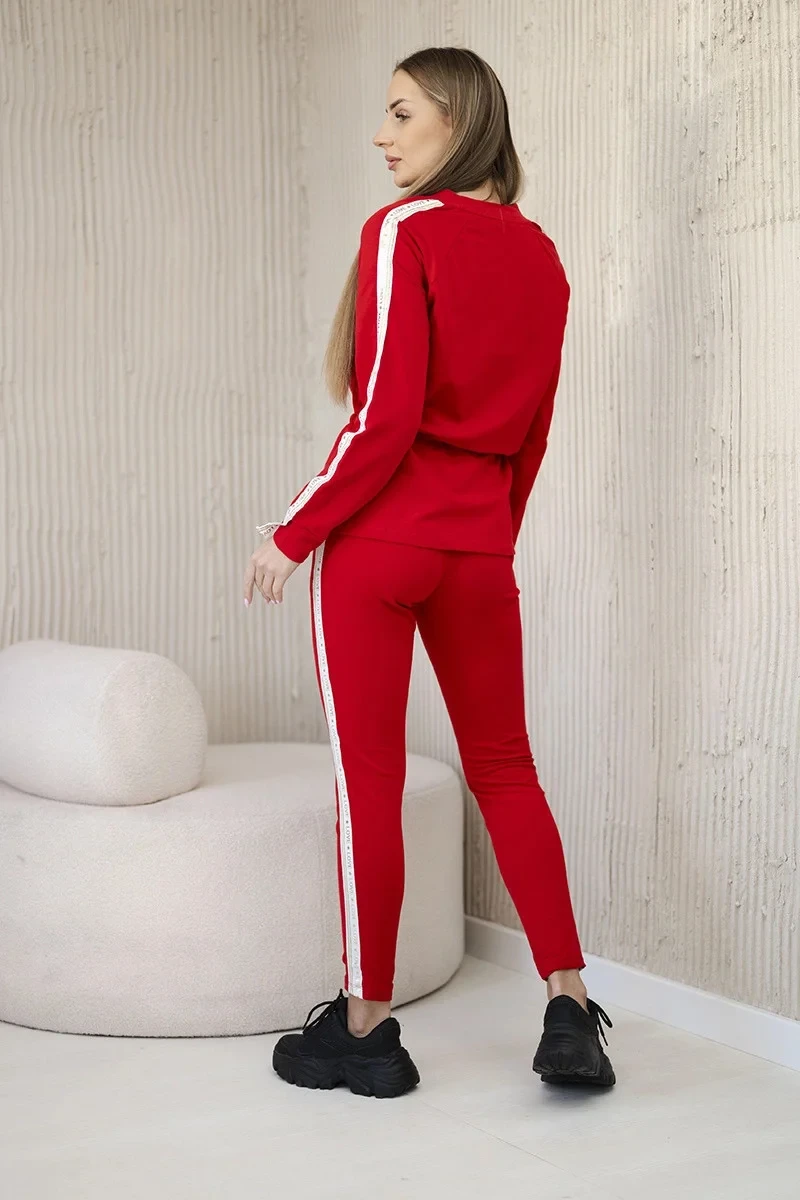 Dámská bavlněná souprava s proužky a stahovacími lemy červený
