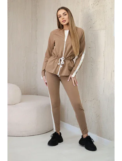 Dámská bavlněná souprava s proužky a stahovacími lemy velbloud
