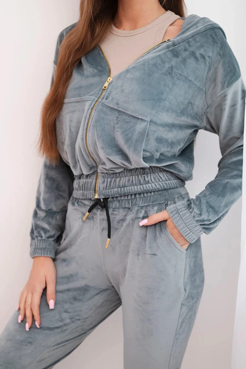 Představujeme vám třídílnou sadu. Souprava se skládá z mikiny, přiléhavého žebrovaného topu a legín s vysokým pasem. Nahoru a legíny jsou vyrobeny z žebrovaného materiálu. Sada je vyrobena z vysoce kvalitního materiálu. Velikost je univerzální a vyhovuje dámám velikosti S nebo M.