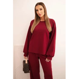 Dámská bavlněná souprava se širokými nohavicemi a mikinou s dlouhým rukávem bordó