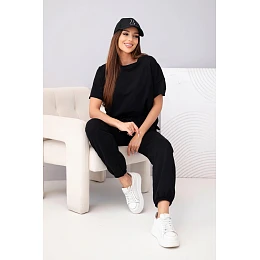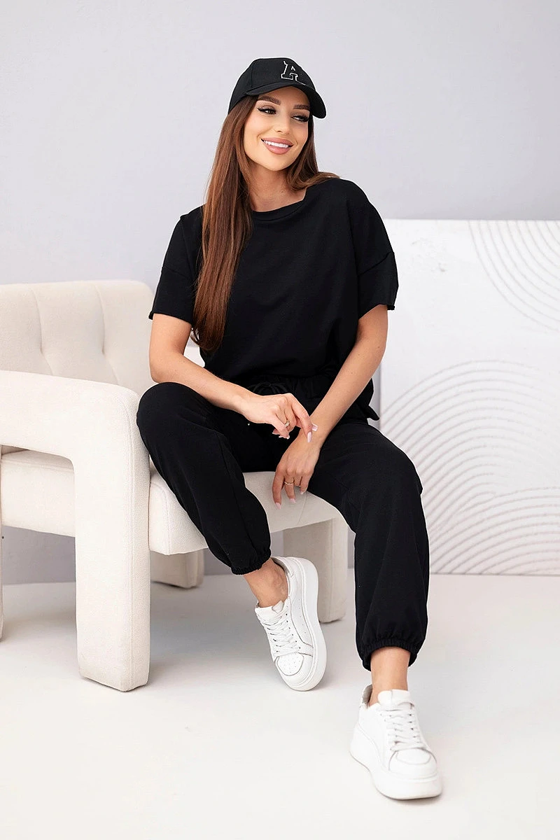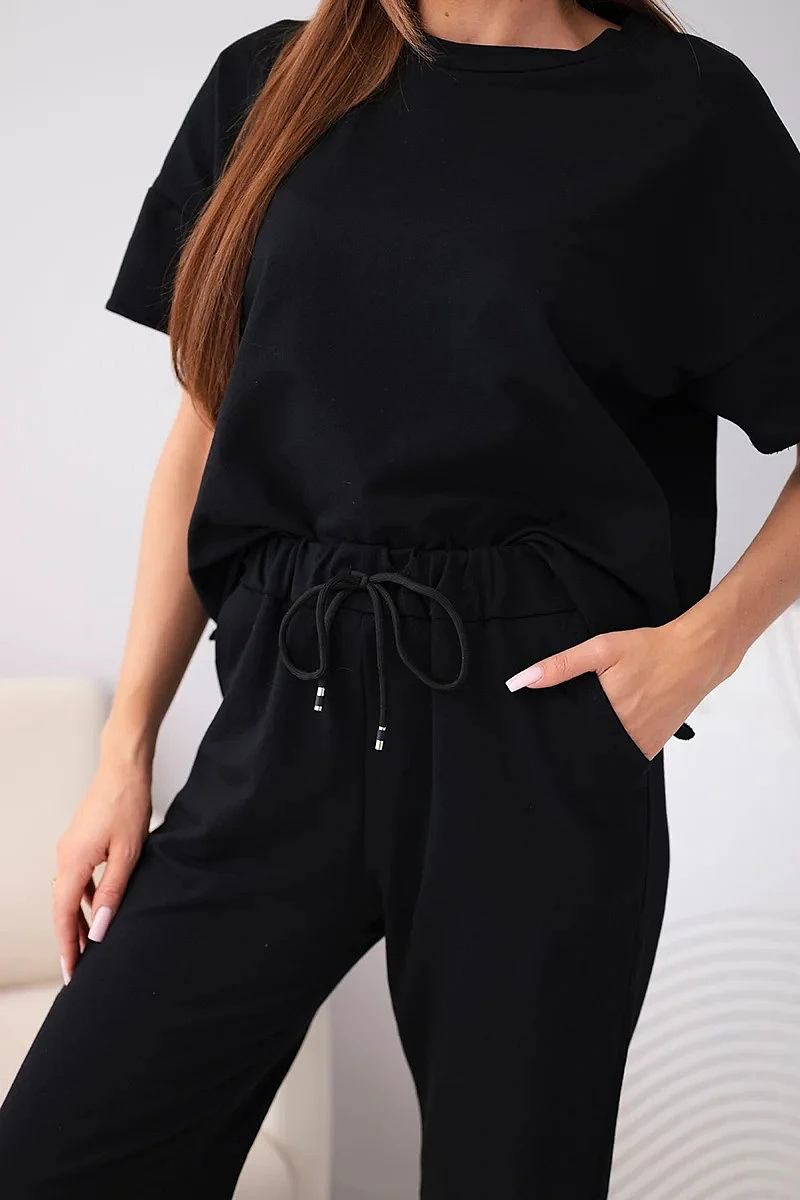 Dámská bavlněná souprava tričko s krátkým rukávem a teplákové kalhoty černý