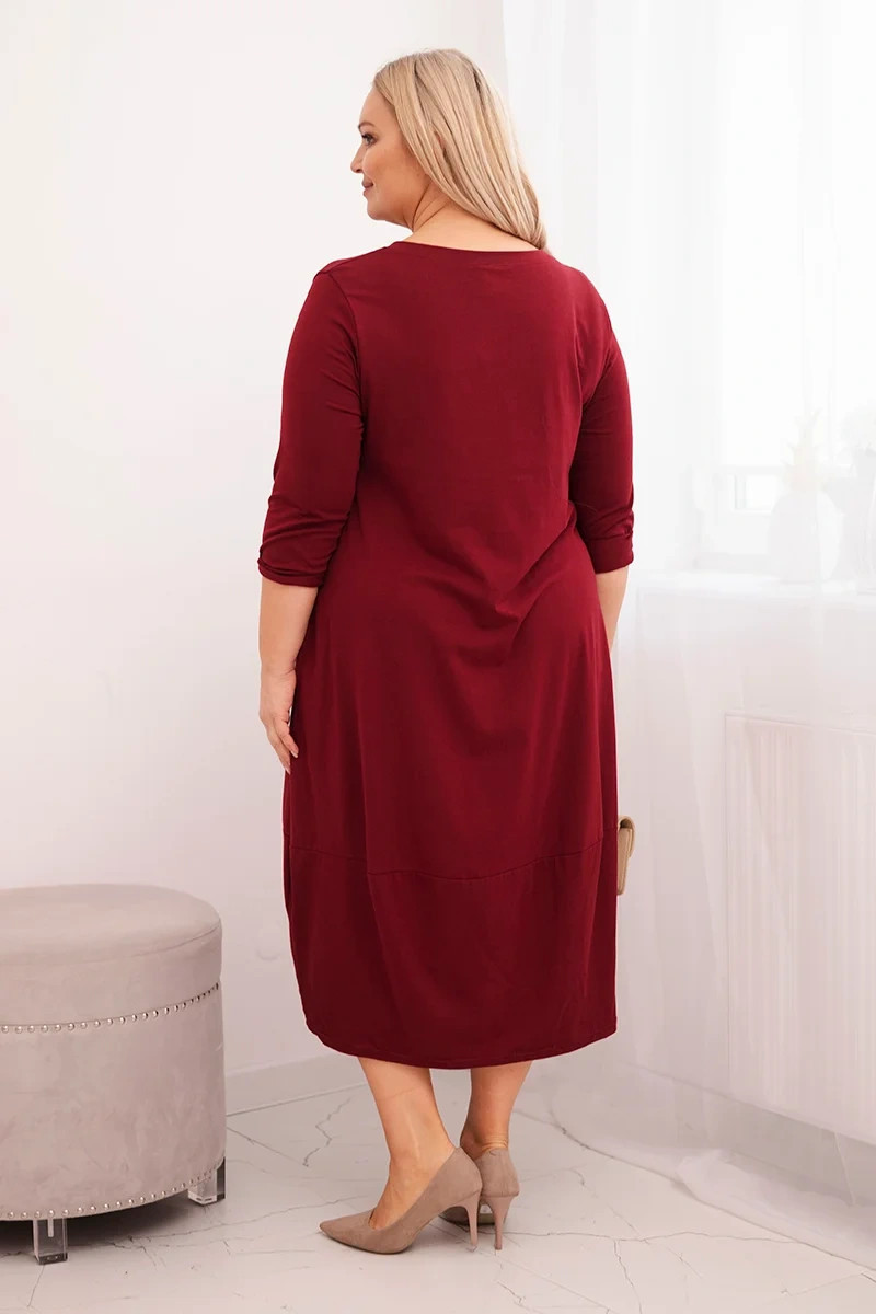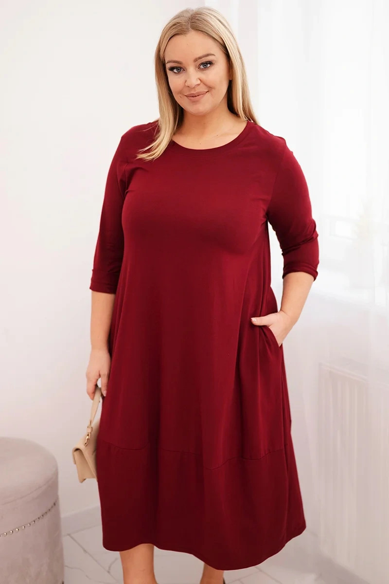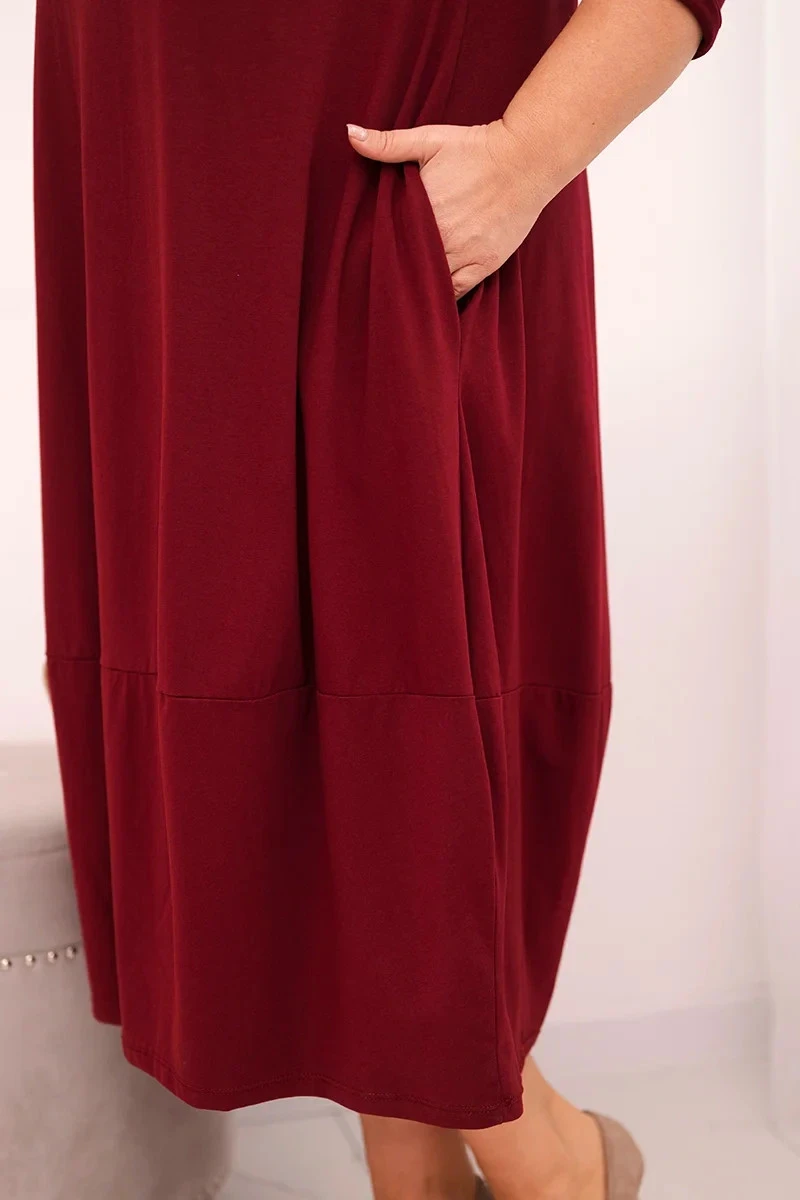 Přidání recenze k Dámská bavlněná sukně Plus Size s ohrnovacími rukávy a kapsami bordová