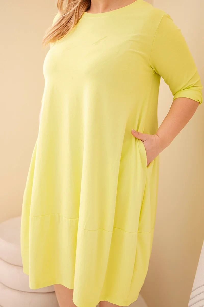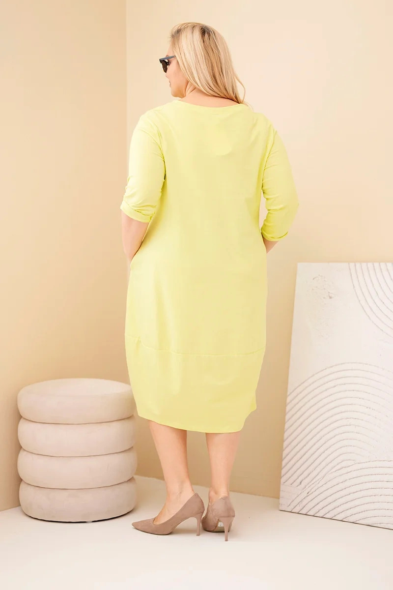 Dámská bavlněná suknička Plus Size s ohrnutým rukávem a kapsami pistáciová