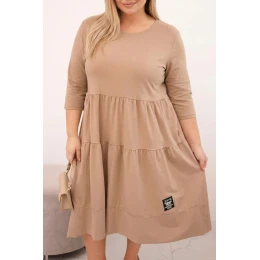 Dámská bavlněná sukýnka Plus Size s volánky a ohrnutým rukávem camelová