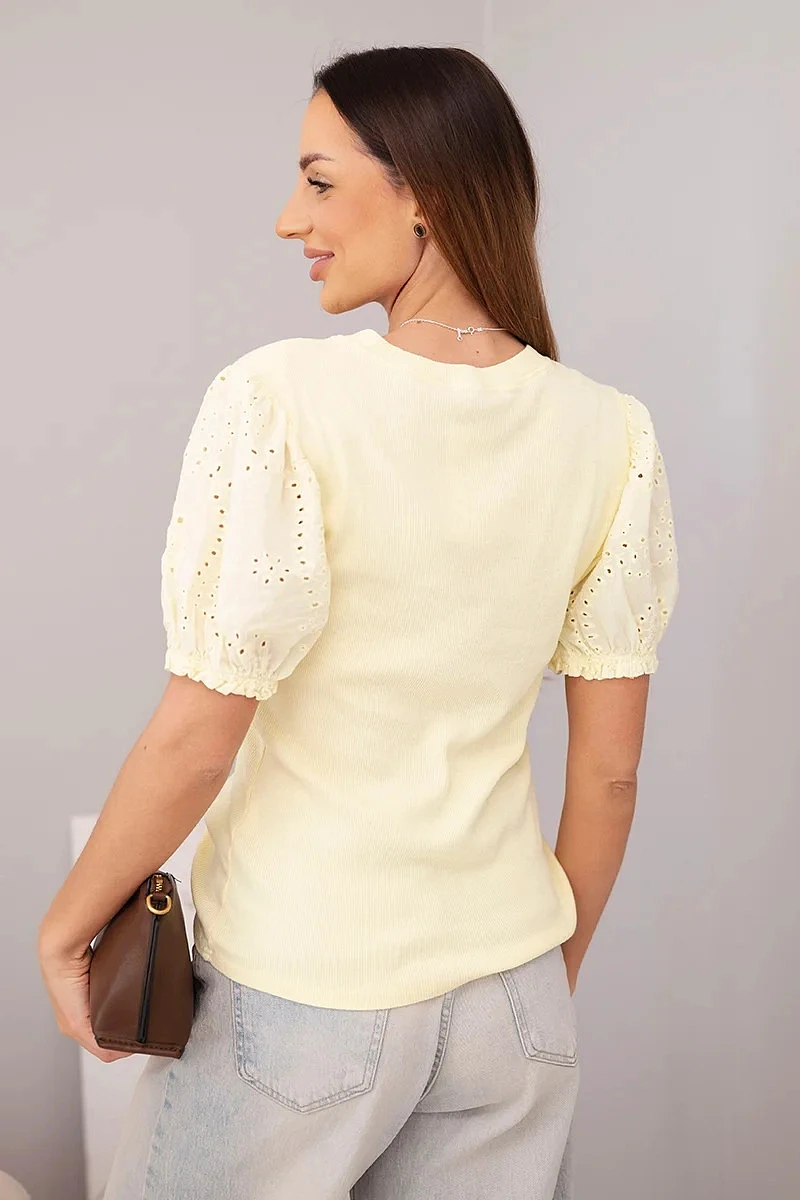 Dámská bavlněná žebrovaná halenka s rukávy a žlutá model 22045179 - K-Fashion