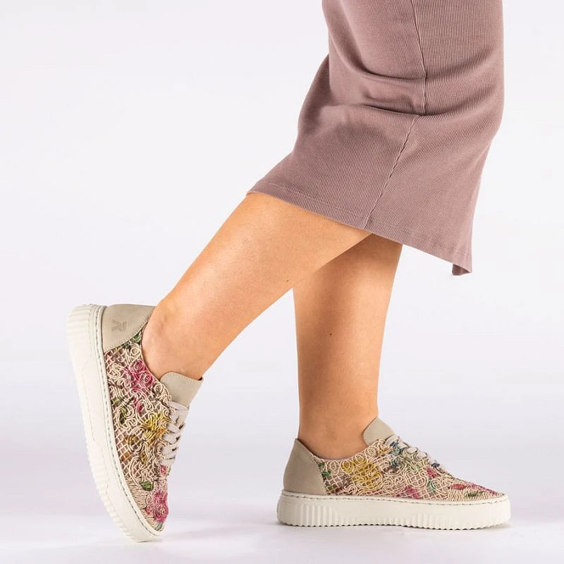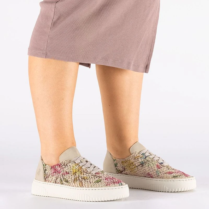 Dámská béžová květinová prolamovaná obuv Rieker N9919-91