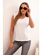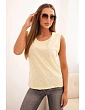 Tato dámská bezrukávová blůza je vynikající volbou na teplejší dny. Vyrobená ze 100% přírodní bavlny, zaručuje prodyšnost a komfort nošení po celý den. Jednoduchý, klasický střih s kulatým výstřihem ji činí vhodnou pro mnoho stylizací – jak pro casual, tak i pro elegantnější příležitosti.