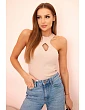 Dámská bezrukávová blůza s výstřihem a ozdobnou sponou bežová
