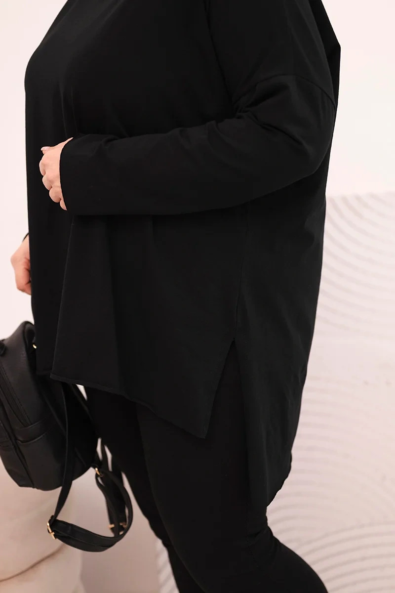 Dámská blůza Plus Size asymetrická s dlouhým rukávem černá
