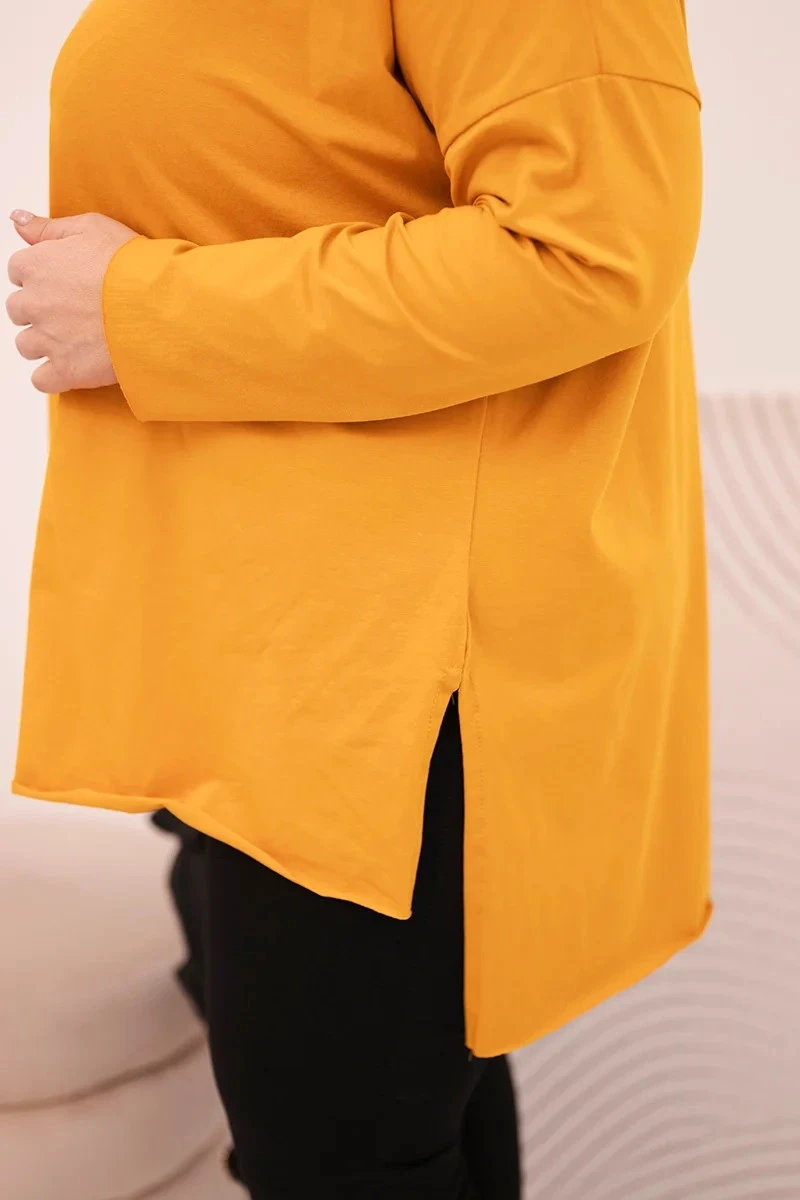 Dámská blůza Plus Size asymetrická s dlouhým rukávem hořčicová