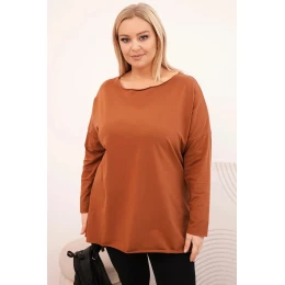 Dámská blůza Plus Size asymetrická s dlouhým rukávem tmavě camelová