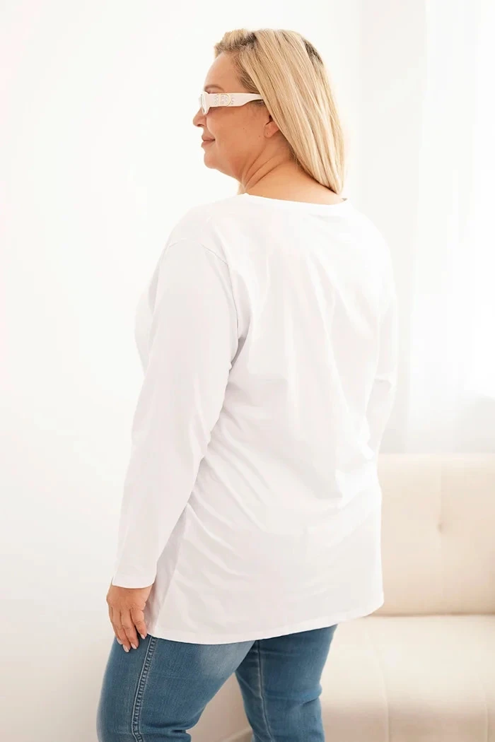 Dámská blůza Plus Size bavlněná s kulatým výstřihem bílá