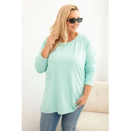 Dámská blůza Plus Size bavlněná s kulatým výstřihem mátová