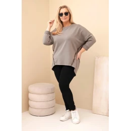 Dámská blůza Plus Size bavlněná s model 21837240 rukávem a lampasem v leopardím vzoru fango - K-Fashion