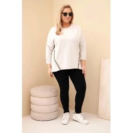Dámská blůza Plus Size bavlněná s ohrnovacími rukávy a leopardím lampasem béžová