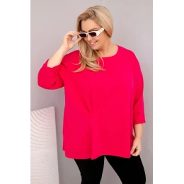 Dámská blůza plus size s bavlnou a dlouhým rukávem a nařasením fuchsie