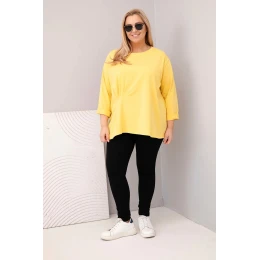 Dámská blůza plus size s bavlnou a dlouhým rukávem a nařasením žlutá