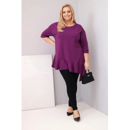 Dámská blůza Plus Size s bavlnou a volánem a ohrnovacími rukávy tmavě fialová