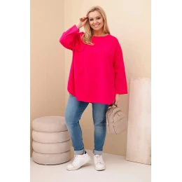 Dámská blůza Plus Size s bavlnou, kapsou a model 21837280 rukávem fuchsie - K-Fashion