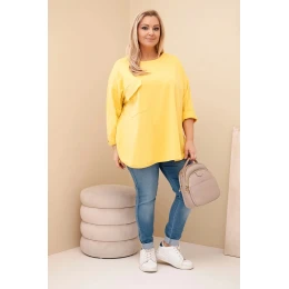 Dámská blůza Plus Size s bavlnou, kapsou a ohrnovacími rukávy žlutá