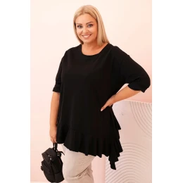 Tento dámský plus size top s bavlnou je výjimečný model, který spojuje pohodlí s módním, ženským akcentem. Ušitý z měkké a elastické bavlněné pleteniny, zajišťuje komfort nošení po celý den. Volný střih neobepíná postavu, a dekorativní volán na spodním okraji dodává topu lehkost a charakter.