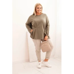 Dámská blůza Plus Size s bavlnou, kapsou a ohrnutým rukávem kiwi
