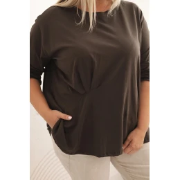 Tato dámská plus size košile s bavlnou je pohodlný a stylový model navržený pro ženy, které si cení komfortu v každodenních stylizacích. Vyrobená z vysoce kvalitní bavlněné pleteniny s příměsí elastanu, je měkká, prodyšná a příjemná na nošení. Volný střih s jemným nařasením vpředu decentně modeluje postavu a dodává celku lehkost.