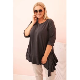 Tento dámský plus size top s bavlnou je výjimečný model, který spojuje pohodlí s módním, ženským akcentem. Ušitý z měkké a elastické bavlněné pleteniny, zajišťuje komfort nošení po celý den. Volný střih neobepíná postavu, a dekorativní volán na spodním okraji dodává topu lehkost a charakter.