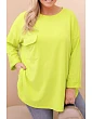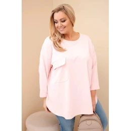 Dámská blůza Plus Size s bavlnou, kapsou a ohrnutým rukávem pudrově růžová