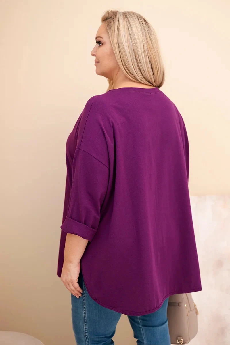 Dámská blůza Plus Size s bavlnou, s kapsou a ohrnutým rukávem tmavě fialová