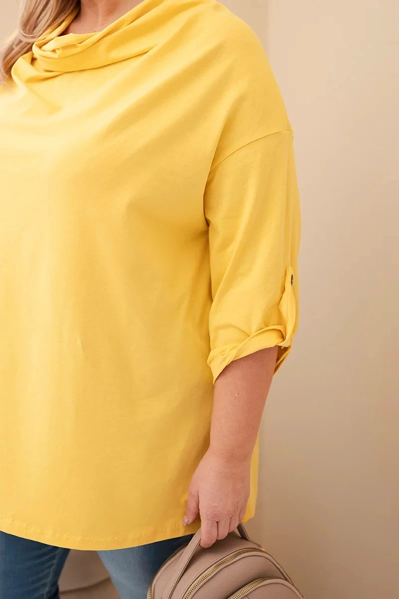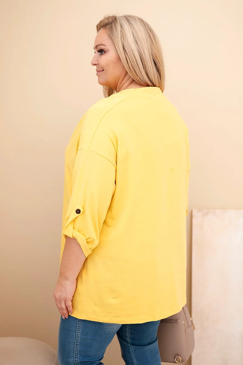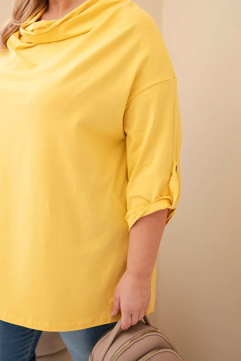 Dámská blůza Plus Size s bavlnou v model 21837312 střihu s vodním výstřihem žlutá - K-Fashion
