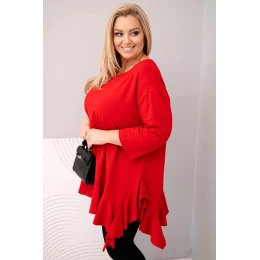 Dámská blůza Plus Size s bavlnou, volánem a ohrnovacími rukávy červená
