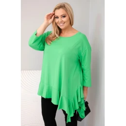 Dámská blůza Plus Size s bavlnou, volánem a ohrnutým rukávem světle zelená